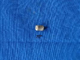 | Description / विवरण | Cylindrical shaped bead of banded agate with bands of grey, black and white on the smooth surface and a perforation at the center. |