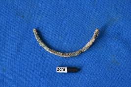 | Description / विवरण | A fragment of a copper bangle with circular cross section and a patinated surface. |