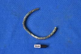 | Description / विवरण | Two fragments of a copper bangle with a patinated surface and a circular cross-section. |