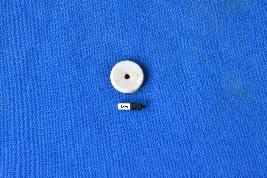 | Description / विवरण | A disc shaped bead of shell in white colour with a smooth surface and a perforation at the center. |