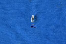 | Description / विवरण | A cylindrical shaped pendant of crystalline quartz tapering towards the top, with a smooth surface and a transverse perforation. |