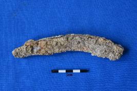 | Description / विवरण | A fragment of a sickle of iron with breakage near the end that was hafted and a corroded surface. |