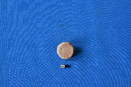 | Description / विवरण | A circular shaped hopscotch of terracotta with a red slip on one side, finished edges, thick cross section, smooth surface and slight breakage at the edge. |