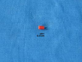 | Description / विवरण | A cylindrical shaped bead of carnelian in red orangish colour with a smooth surface and perforation at the center. |