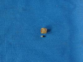 | Description / विवरण | A yellow coloured tubular shaped bead of agate carnelian with a black band in the material, a smooth surface and perforation at the center. |