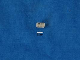 | Description / विवरण | Tubular shaped bead of crystalline quartz with a smooth surface and perforation at the center. |