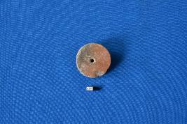 | Description / विवरण | A terracotta spindle whorl or wheel with finished edges and a hole in the middle. The fabric used is red slipped ware. |