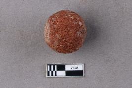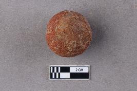 | Description / विवरण | A small, slightly heavy sphere of terracotta. It is reddish in colour and shows peeling on the surface probably due to salinity in the soil from where it was excavated. |