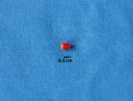 | Description / विवरण | Cylindrical shaped bead of carnelian in red colour with a smooth surface and perforation at the center. |