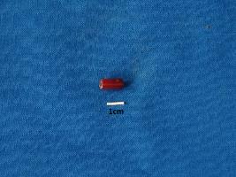 | Description / विवरण | Long tubular shaped bead of carnelian in red colour with a smooth surface and perforation at the center. |