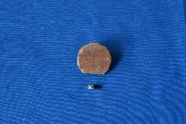 | Description / विवरण | A circular shaped hopscotch of terracotta with ground edges and partially broken, made out of red ware potsherd. |