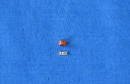 | Description / विवरण | A cube shaped micro bead of carnelian in red colour with a perforation and a smooth surface. |