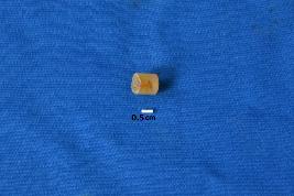 | Description / विवरण | A cylindrical shaped bead of carnelian with shades of orange and pale yellow with a smooth surface and perforation at the center. |