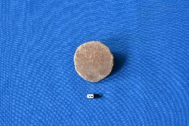 | Description / विवरण | A circular shaped hopscotch of red slip ware with unfinished edges and a thick cross-section. |