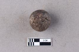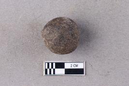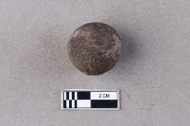 | Description / विवरण | A small, slightly heavy sphere of terracotta with a smooth surface. It is dark brown in colour and shows slight damage. |