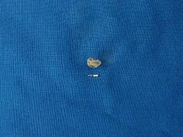 | Description / विवरण | Bead of crystalline quartz in triangular cross section with a smooth surface and perforation at the center. |