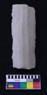 | Description / विवरण | Fragment of blade is off white in color, having both ends broken, retouched sides and ridges on the top. |