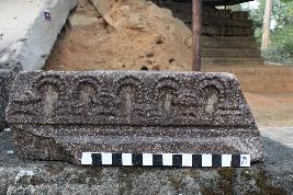 | Description / विवरण | This is a piece of an architectural fragment. Beautifully carved by miniature arches composed of pearl shape design. The base of each arch has joined with a row of small kirtimukhas. |