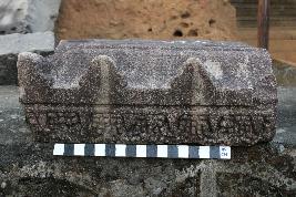 | Description / विवरण | This is a part of adhisthana moulding of a temple.The upper part consists of three pointed protruding edges. Whereas the lower part is carved with a row of pearl shape designs. |