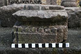 | Description / विवरण | This is a fragment of the temple. The upper part is composed of a carved canopy whereas the lower part consists of a row of small geometric protruding edges. |