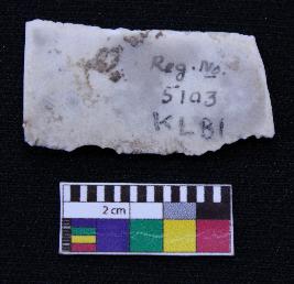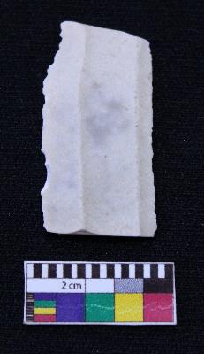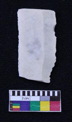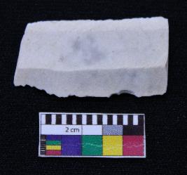 | Description / विवरण | Fragment of blade is white in color, having both ends broken, retouched sides, ridges on the top and thin section. |