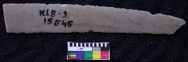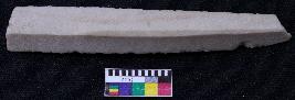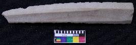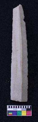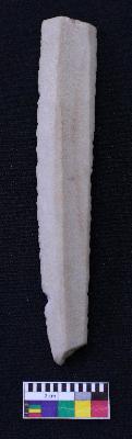 | Description / विवरण | Fragment of blade is off white in color, having both ends broken, retouched sides, mid ridge on the top and triangular section. |