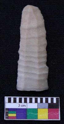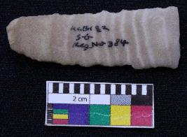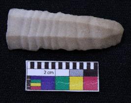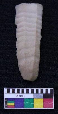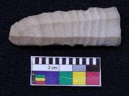| Description / विवरण | Fragment of blade is dull brown in color, having one end broken, sides retouched, ridges on the top and thin section. |