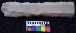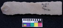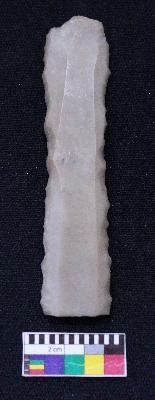 | Description / विवरण | Fragment of blade is dull brown in color, having positive bulb of percussion at one end, other end is broken and both sides are retouched. |