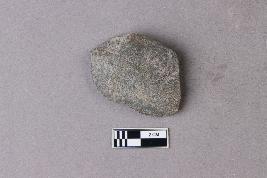 | Description / विवरण | The object is a flake from a ground polished stone tool made of basalt. There is a smooth outer surface with a few more flake scars from where more flakes have been dislodged. |