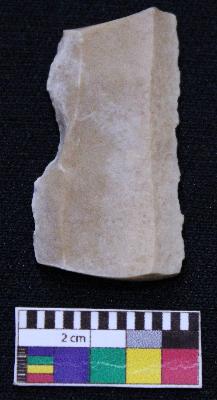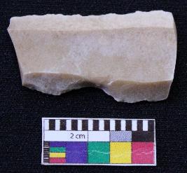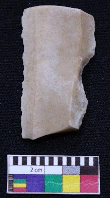 | Description / विवरण | Fragment of blade is dull brown in color, having both ends broken, retouched sides and thin section. |