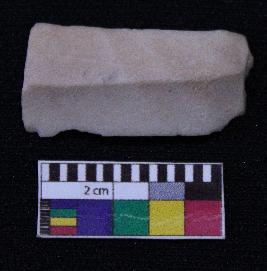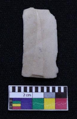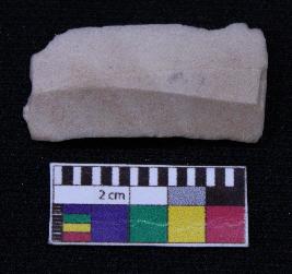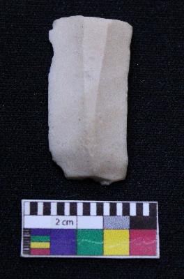 | Description / विवरण | Fragment of blade is off white in color, having broken one end, retouched sides, mid ridge on the top and triangular section. |