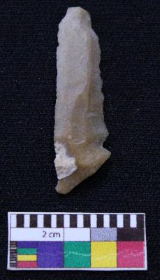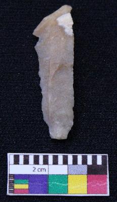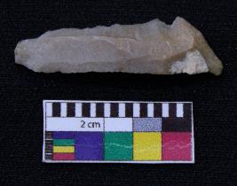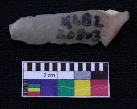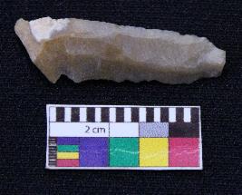 | Description / विवरण | Fragment of blade is dull brown in color, having broken one end, retouched sides and thin section. |