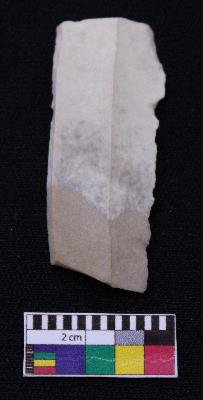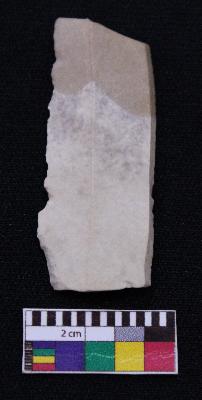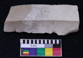 | Description / विवरण | Fragment of blade is off white in color, having both ends broken, retouched sides and ridges on the top. |