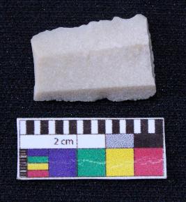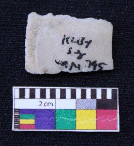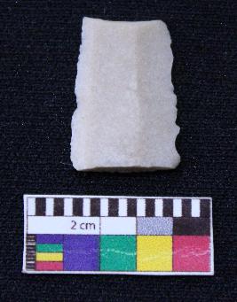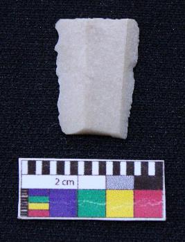 | Description / विवरण | Fragment of blade is white in color, having broken ends, both retouched sides, ridges on the top and thin section. |