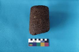 | Description / विवरण | A fragment of a pestle/ pounder broken from one end and tapering slightly towards the other end measuring 4.1cm. The surface is smooth which indicates it was used for grinding. The intact end is slightly broken/ chipped towards its edges. Cross-section is almost cricular and it is coarse grained. |