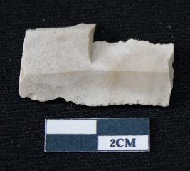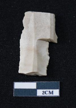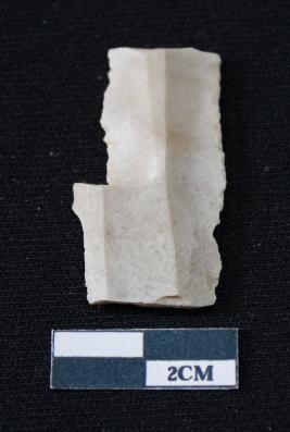 | Description / विवरण | Fragment of incomplete blade is off white in color, having smooth body, both ends broken, one side is retouched, other sides is partly retouched, mid ridge on the top and triangular section. |