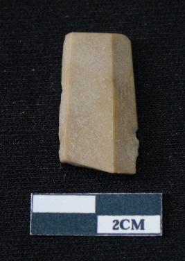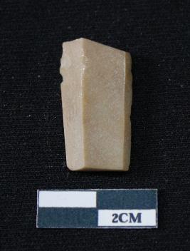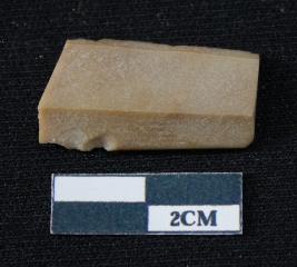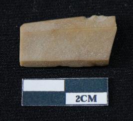 | Description / विवरण | Fragment of blade is brown in color having both ends broken, one side is retouched, other sides is partly retouched and thin section. |