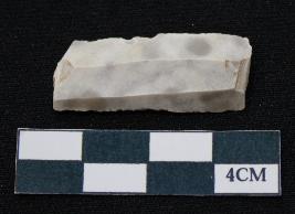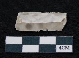 | Description / विवरण | Fragment of blade is off white in color, having smooth body, both ends is broken, sides are retouched, ridges on the top and thin section. |