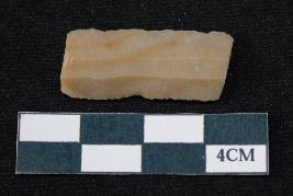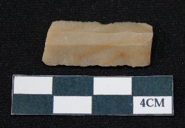 | Description / विवरण | Fragment of blade is dull brown in color, having both ends broken, sides are retouched, ridges on the top and thin section. |