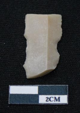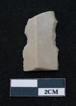 | Description / विवरण | Fragment of blade is dull brown in color, having smooth body, both ends broken, sides are retouched, mid ridge on the top and triangular section. |