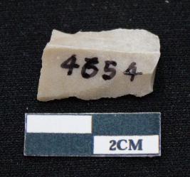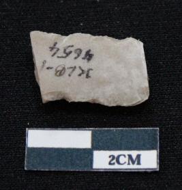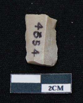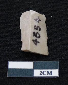| Description / विवरण | Fragment of blade is off white in color, having smooth body, both ends broken, retouched parallel sides, mid ridge on the top and triangular section. |