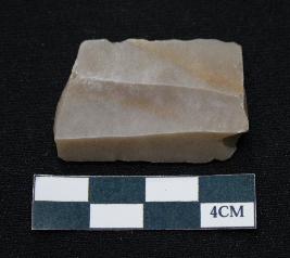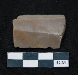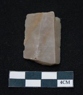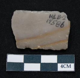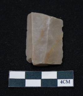 | Description / विवरण | Fragment of blade is dull brown in color, having both ends broken, retouched parallel sides, ridges on the top and thick section. |