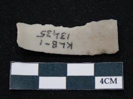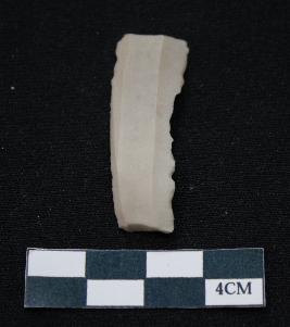 | Description / विवरण | Fragment of blade is off white in color, having smooth body, one end broken, one side is retouched, other side is partly retouched, ridges on the top and thin section. |