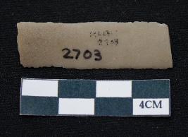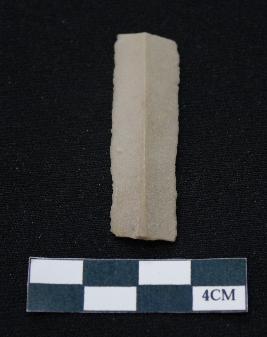 | Description / विवरण | Fragment of blade is dull brown in color, having broken both ends, retouched parallel sides, mid ridge on the top and triangular section. |