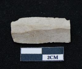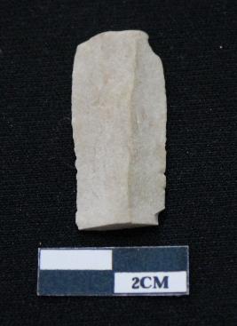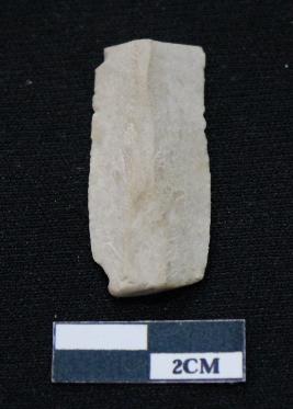 | Description / विवरण | Fragment of blade is off white in color, having broken ends, sides are retouched, mid ridge on the top and triangular section. |