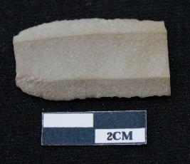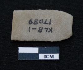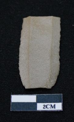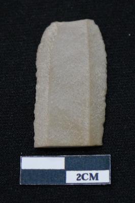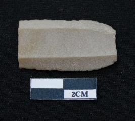 | Description / विवरण | Fragment of blade is dull brown in color, having positive bulb of percussion at one end, other end is broken, sides are retouched, ridges on the top and thin section. |