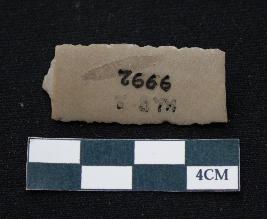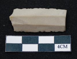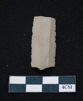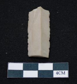 | Description / विवरण | Fragment of blade is dull brown in color, having both ends broken, retouched parallel sides, mid ridge on the top and triangular section. |