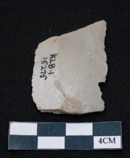 | Description / विवरण | Fragment of blade is off white in color, having both ends broken, sides are retouched, ridges on the top and triangular section. |