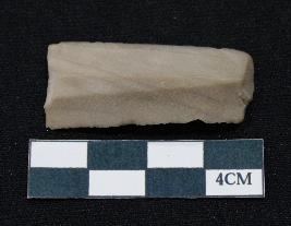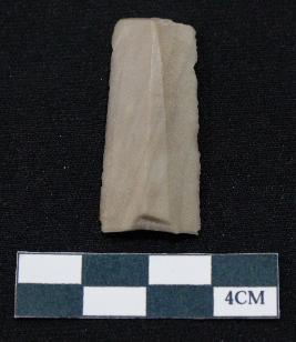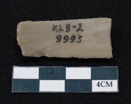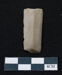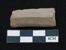 | Description / विवरण | Fragment of blade is dull brown in color having long body, one end broken, one side is retouched, other side had no retouching, mid ridge on the top and triangular section. |