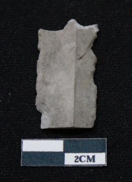 | Description / विवरण | Fragment of blade is grey in color, having one end broken, retouched parallel sides, ridges on the top and triangular section. |